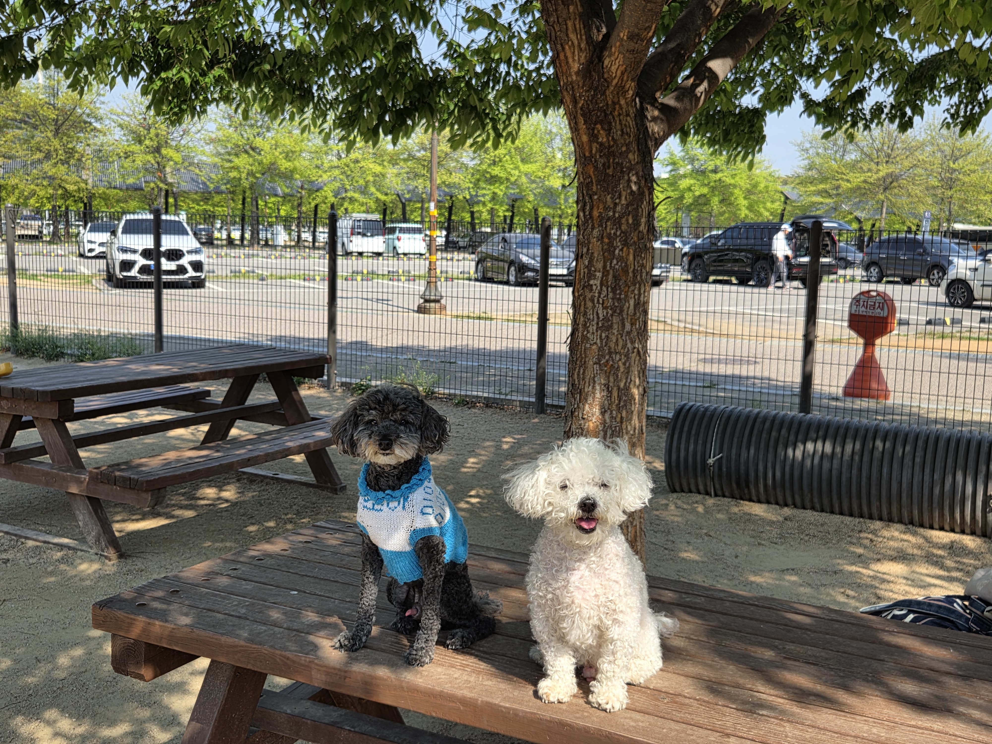 처음 우리 아가들하고 방문했을 때, 평소에 얌전히 앉아 있기만 했던 그래는 호기심을 잔뜩 가지고, 여기저기 냄새를 맡으며 돌아다녔고, 조아는 너무 신나서 몇 바퀴를 순식간에 돌았다. 나부터도 무료로 들어갈 수 있는 반려견 놀이터가 너무 좋아서 한동안 매일같이 방문했다. 그래서 그런가 다른 반려견 카페보다 훨씬 지출이 적었다. 그리고 그것이 뭔가 시너지를 일으켰던 것 같기도 하다. 주말이면, 평소에는 잘 볼 수 없는 많은 견종들이 한꺼번에 방문하기 때문에 주변에 지나가는 사람들한테는 구경거리를 제공하는 효과가 있었다. 그 많고 많은 파라솔이나 벤치 의자들이 모자랄 정도로 많은 강아지와 보호자가 방문했던 것이 기억난다.